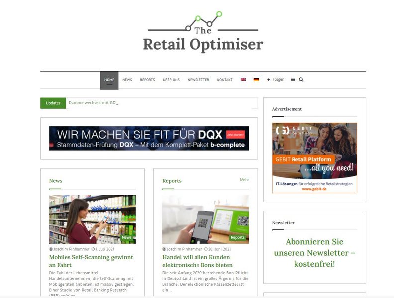 Der Retail Optimiser ist das Fachmedium für Entscheider im Einzelhandel in den Bereichen Technologie, Logistik, Lieferanten-Kooperation, Ladenbau und Marktforschung. Er erscheint in englischer und deutscher Sprache. Der Retail Optimiser berichtet regelmäßig von herausragenden Projekten und Innovationen, welche das Einkaufserlebnis der Kunden verbessern und die Prozesse des Handels optimieren.