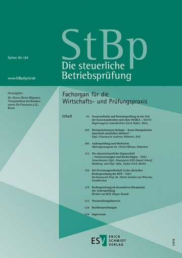 Die StBp informiert monatlich umfassend über die steuerliche Außenprüfung. Steuerexperten aus dem Bundesfinanzministerium, dem Bundeszentralamt für Steuern, den Länderfinanzbehörden, der Finanzgerichtsbarkeit, aus den rechts- und steuerberatenden Berufen, aus Wissenschaft und Wirtschaft behandeln die für eine Betriebsprüfung relevanten Fragen des formellen und materiellen Steuerrechts.