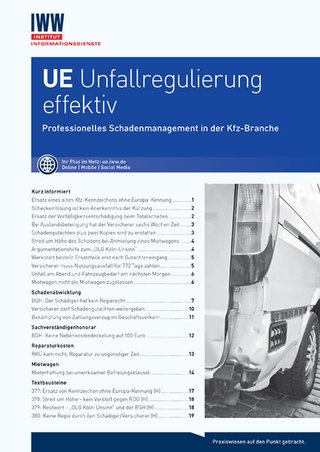 Es ist tägliche Praxis im Schadenmanagement: Mit fadenscheinigen Argumenten kürzen Versicherer Ersatzansprüche. UE Unfallregulierung effektiv hält dagegen! Mit den monatlichen schlagkräftigen Argumenten werden berechtigte Ansprüche effizient und rechtssicher durchgesetzt. Das besonderes Plus: Ein umfangreiches Archiv an direkt nutzbaren Textbausteinen spart Zeit bei der Korrespondenz.