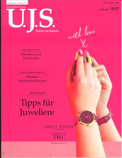 U.J.S. – Uhren Juwelen Schmuck ist das meinungsbildende Fachmagazin für den qualifizierten Facheinzelhandel. Aktuelle Branchennachrichten und neueste Erkenntnisse aus den Bereichen Uhrentechnik, Schmuckherstellung und Gestaltung sowie der Gemmologie bilden einen Schwerpunkt in der Berichterstattung. Der Juwelier findet in U.J.S. fundierte Beratung in den Bereichen: Betriebswirtschaft, EDV und Warenwirtschaft, Einkauf, Verkauf, Sortimentsgestaltung, Ladenbau und Schaufensterdekoration. Einen umfassenden Überblick über das aktuelle Angebot aus Industrie und Großhandel bieten die besonderen Messeausgaben sowie die monatlich im Heft aufgegriffenen Schwerpunktthemen. Porträts, kritische Interviews zu Reizthemen aus dem Facheinzelhandel und die globale Berichterstattung über die Entwicklungen im Ausland runden das Profil von U.J.S. ab und stärken die hohe Leser-Blatt-Bindung. Das Supplement U.J.S. FashionGuide stellt die Vernetzung zwischen Mode, Kosmetik, Accessoires, Uhren und Schmuck her. Es bereitet den Fachhändler bestens auf die Gespräche mit seinen Kunden vor, gibt Anregungen für die Sortimentsgestaltung und liefert ihm übersichtliche Informationen über die Markenwelten. Aus diesem Grund ist der U.J.S. FashionGuide eine wichtige Orientierungshilfe für die Mitarbeiter im Fachgeschäft. Das umfassende Internet-Angebot steht unter www.ujs.info zur Verfügung. Auch ein Online-Newsletter ist hier erhältlich.
