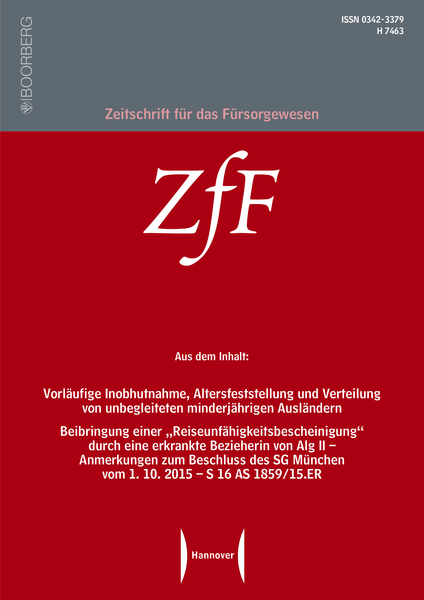Die »Zeitschrift für das Fürsorgewesen (ZfF)« widmet sich den praktischen und rechtlichen Problemen, die Sachbearbeiter in der Jugendhilfe und in der Sozialhilfe immer wieder lösen müssen. Die »ZfF« bietet u.a.: Beiträge aus der Praxis für die Praxis, Aufsätze zu aktuellen und grundsätzlichen Themen, Berichte zur Rechtsprechung, zu neuen Gesetzen und Verordnungen sowie Tabellen und Übersichten zu Regelsätzen der Sozial- und Jugendhilfe.