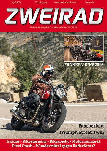 Älteste regionale Motorradfachzeitung für Nordbayern seit 1985, umfangreicher Kleinanzeigenmarkt, Fahrberichte, Neuvorstellungen, Veranstaltungskalender, Insiderthemen aus dem Verbreitungsgebiet,