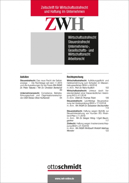 Zeitschrift für Wirtschaftsstrafrecht und Haftung im Unternehmen
